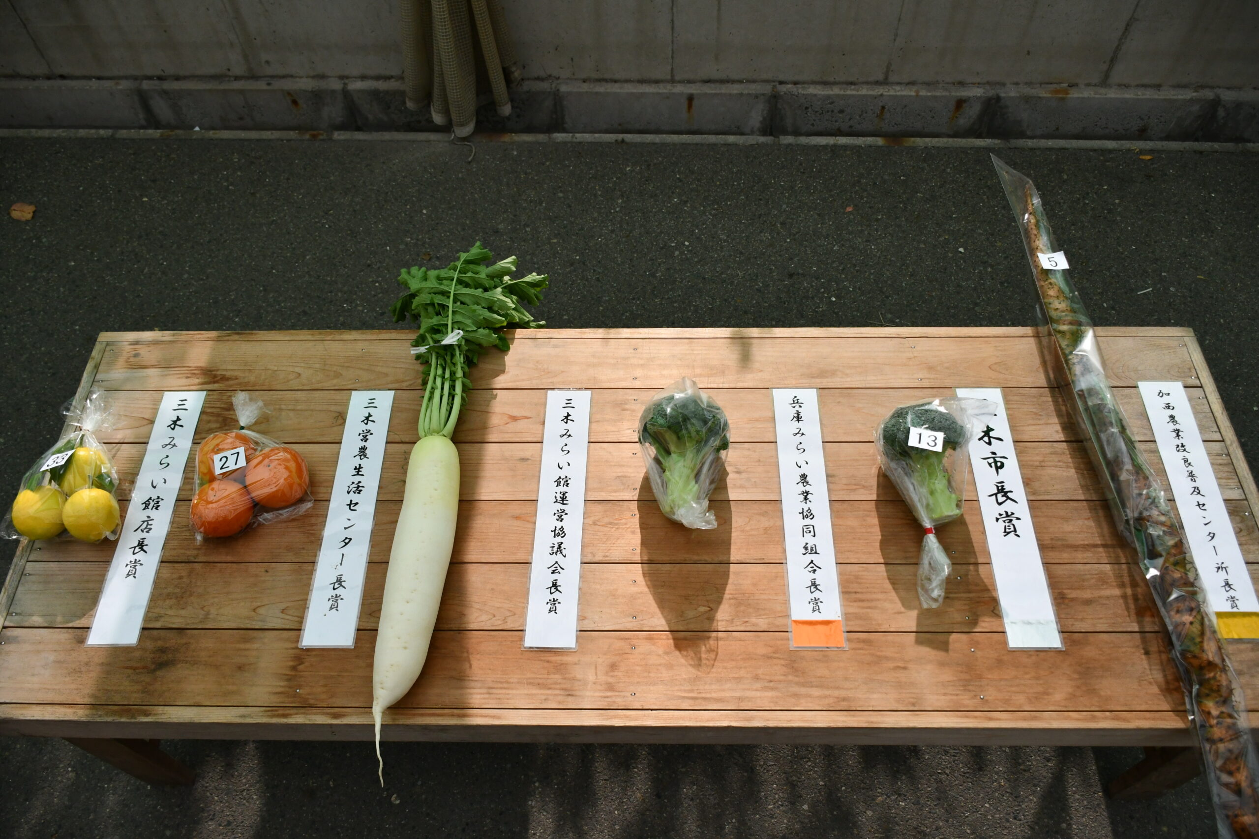 三木みらい館では冬野菜の品評会を開催しました。生産者さんの栽培技術や意欲の向上を目的とし、今回は43点の出品がありました。これからも安心安全な農作物をお客さまにお届けしていきます。