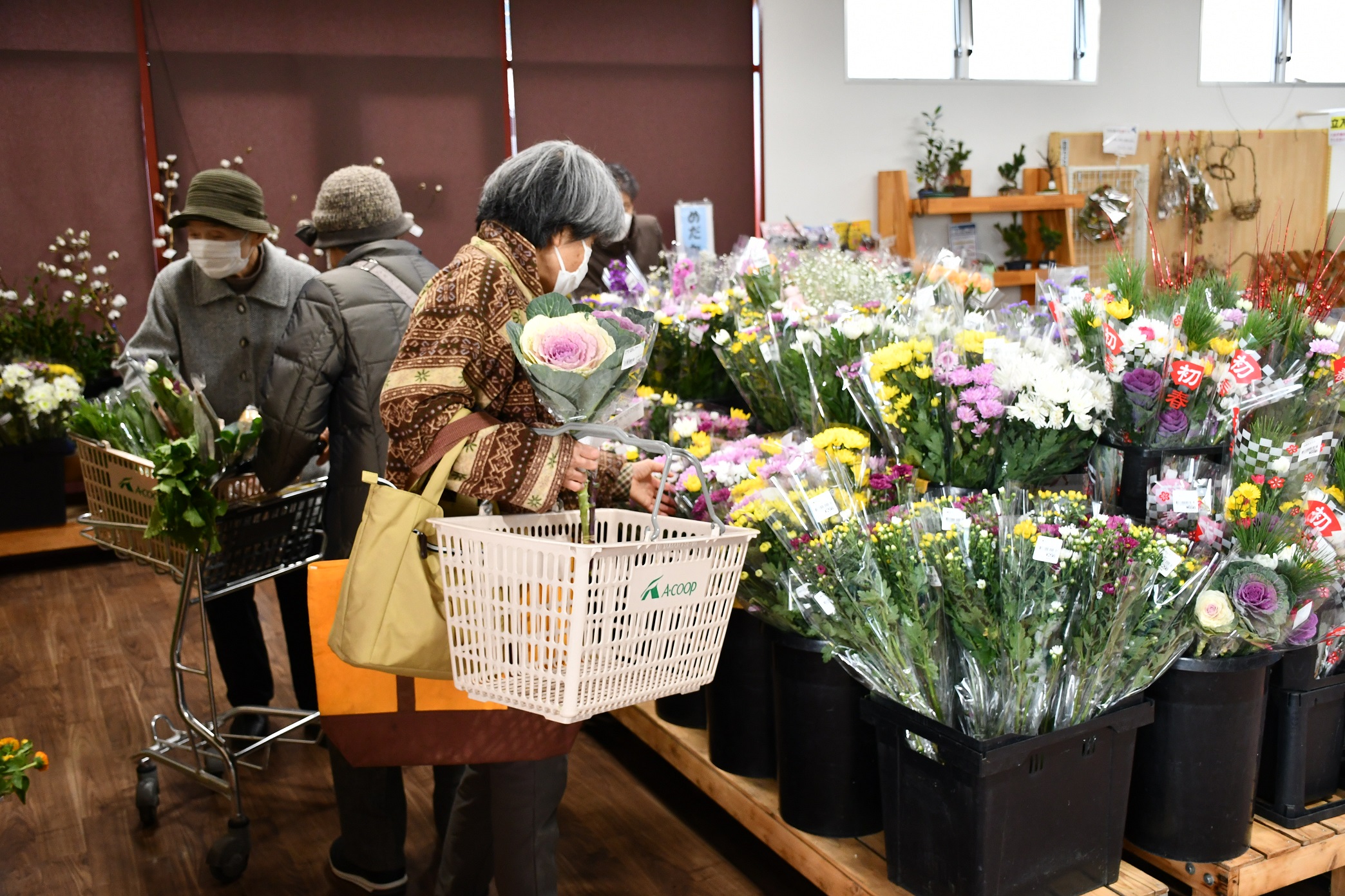 各直売所では、年末の花卉特別販売が開催中。お正月用の華やかな花が勢ぞろいしています。この特別販売は30日(火)まで実施しています(みらい館は29日まで)。ぜひお立ち寄りください。