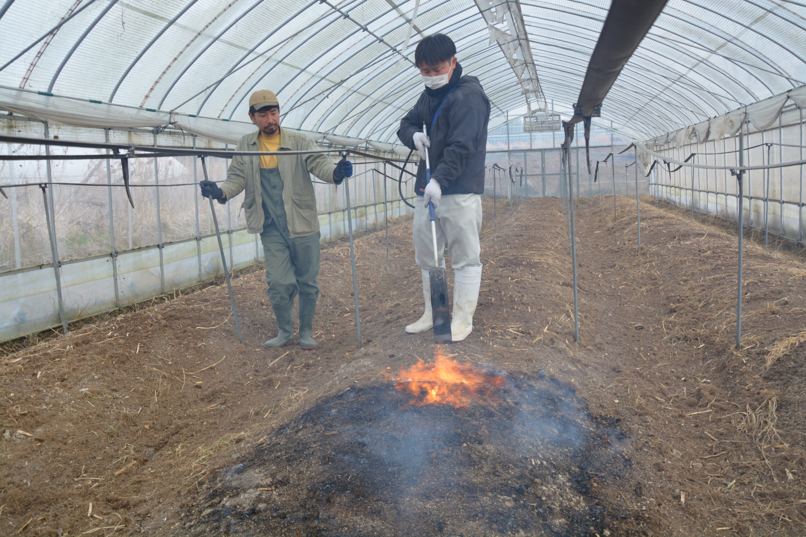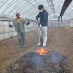 みらいちゃんアスパラの出荷に向けた準備が着々と進められています。この時期には病害虫防除のため土表面の焼却作業を行います。高品質・高収量を確保できるよう、生産者の皆さんは冬場の管理に励まれています。