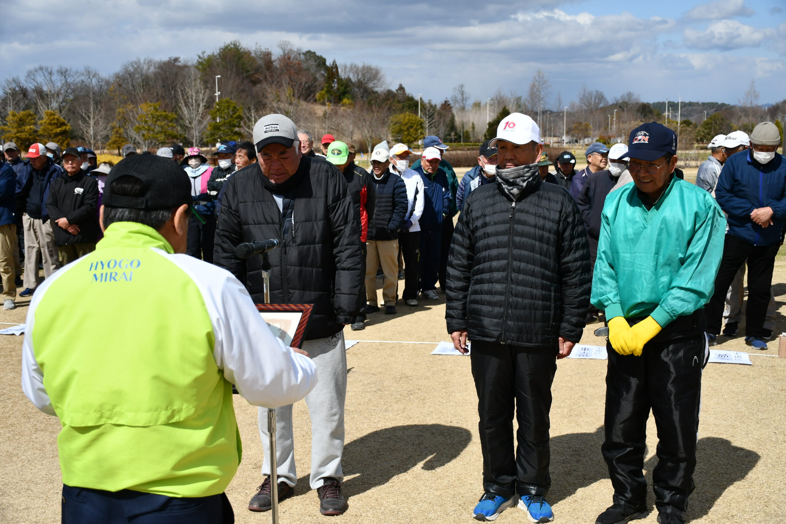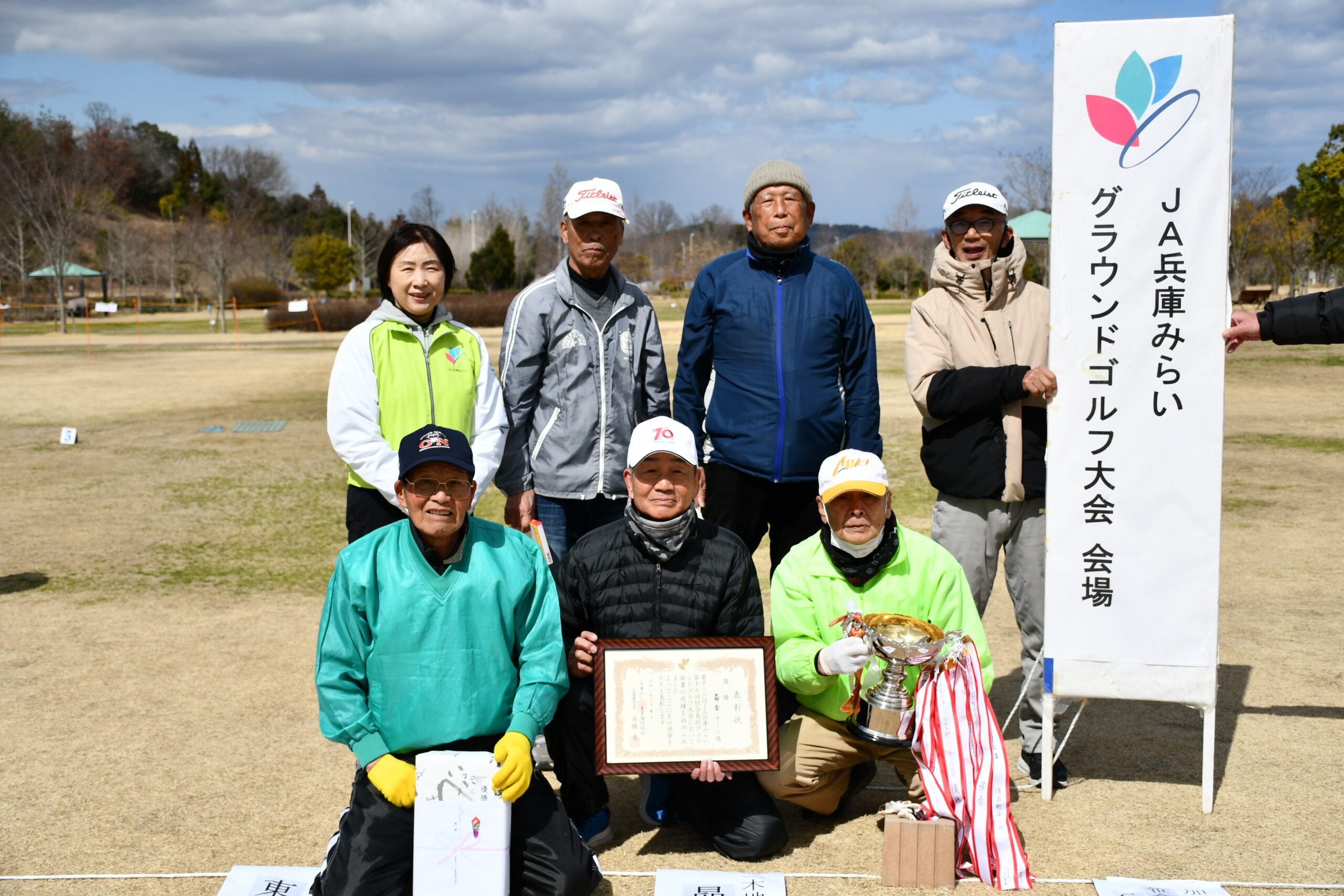 第17回組合長杯グラウンドゴルフ大会を、三木総合防災公園で開催しました。強風で難しいコンディションのなか、20チーム109名が出場。元気ハツラツにプレーを楽しみ、各地区の選手の皆さんが親睦を深めました。