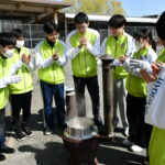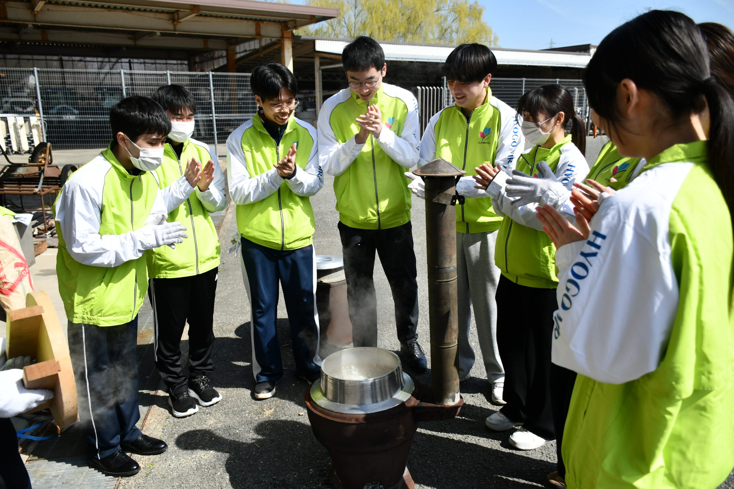 かまどの組み立てから薪での火起こしまで、みんなで協力して炊き上げました。