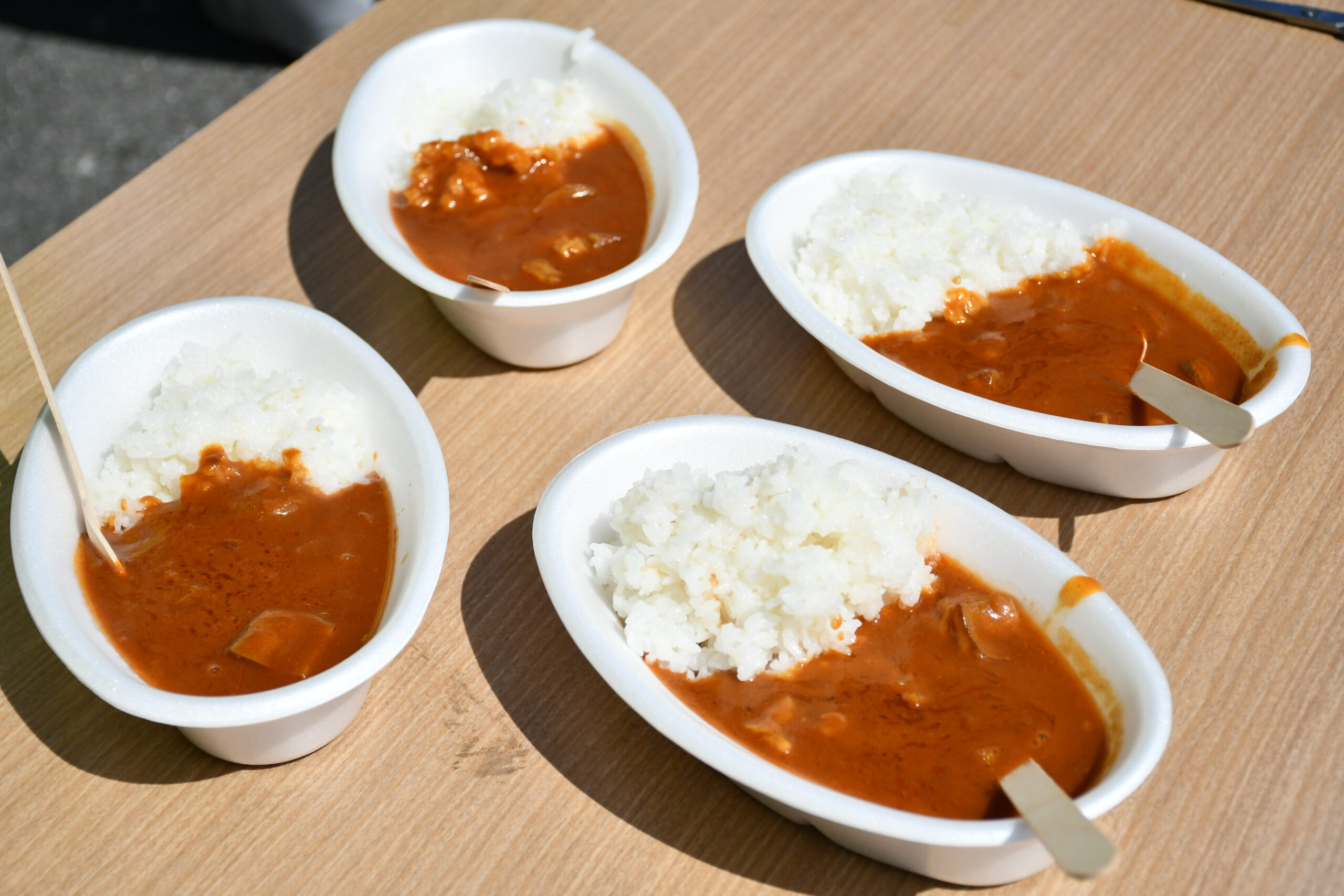 炊きたてご飯×特産の「トマト&牛すじカレー」を高橋組合長と一緒に堪能。