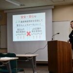 JAみのりと合同で、加工品出荷者向けの研修会を開催しました。食品衛生を改めて学び、衛生管理の徹底を図りました。これからも安心・安全で美味しい地元の味を皆さまへお届けできるよう、努めてまいります。